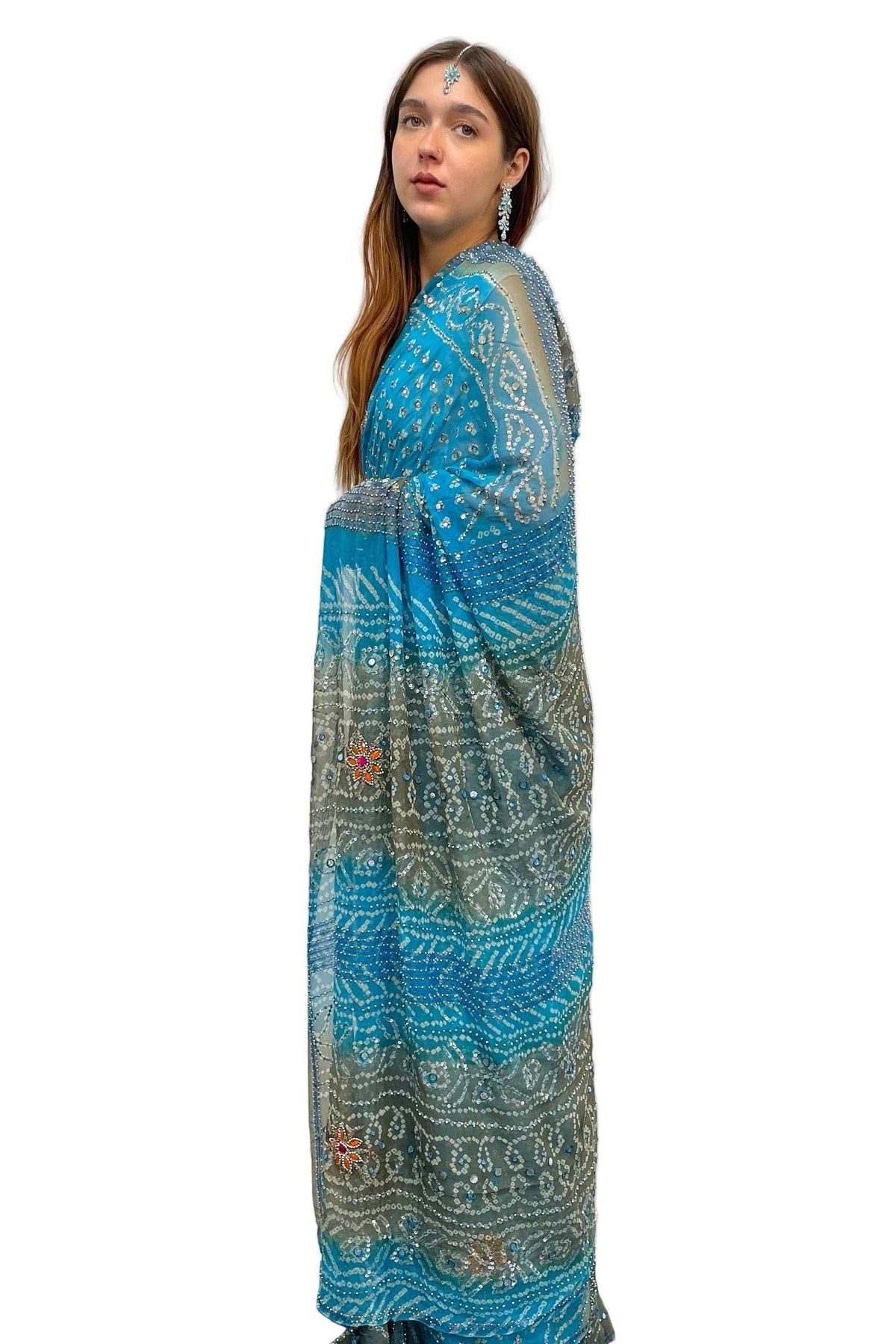 Blue and Grey Georgette Embroidery Saree