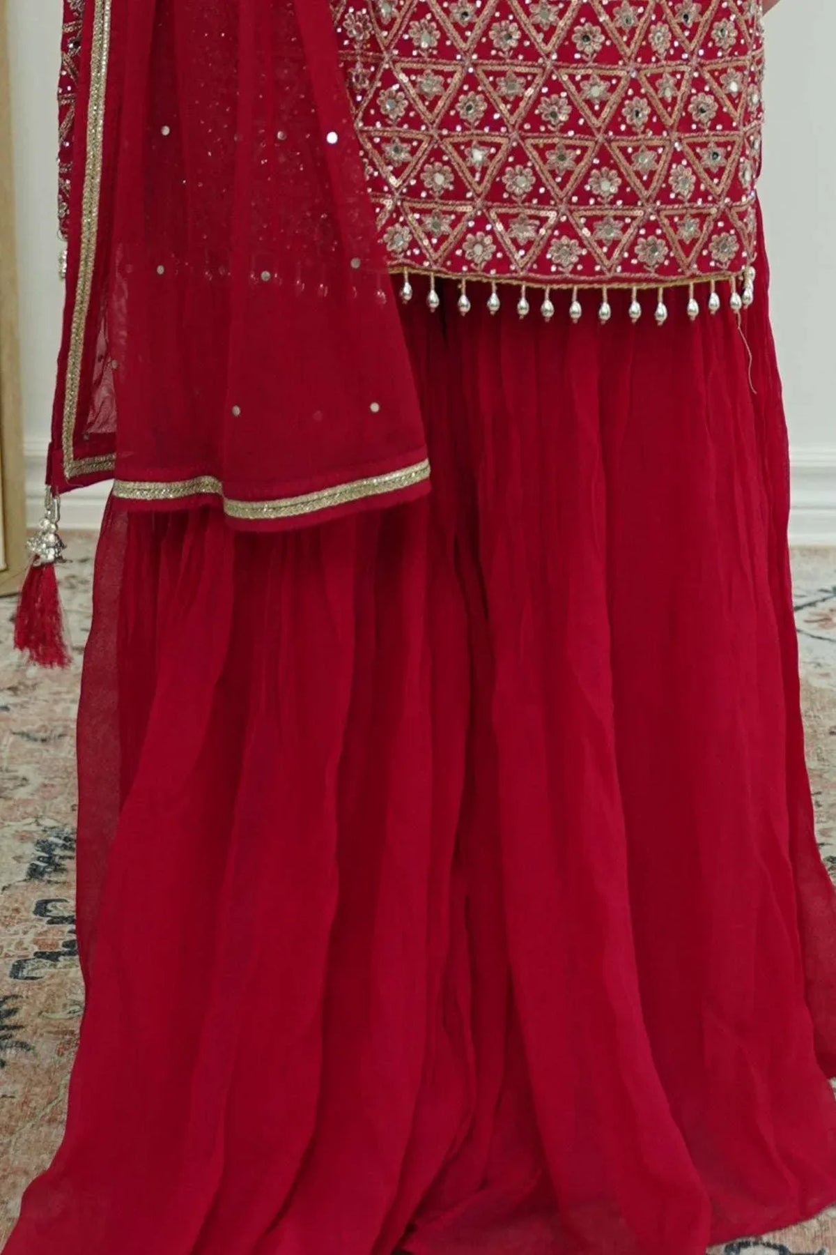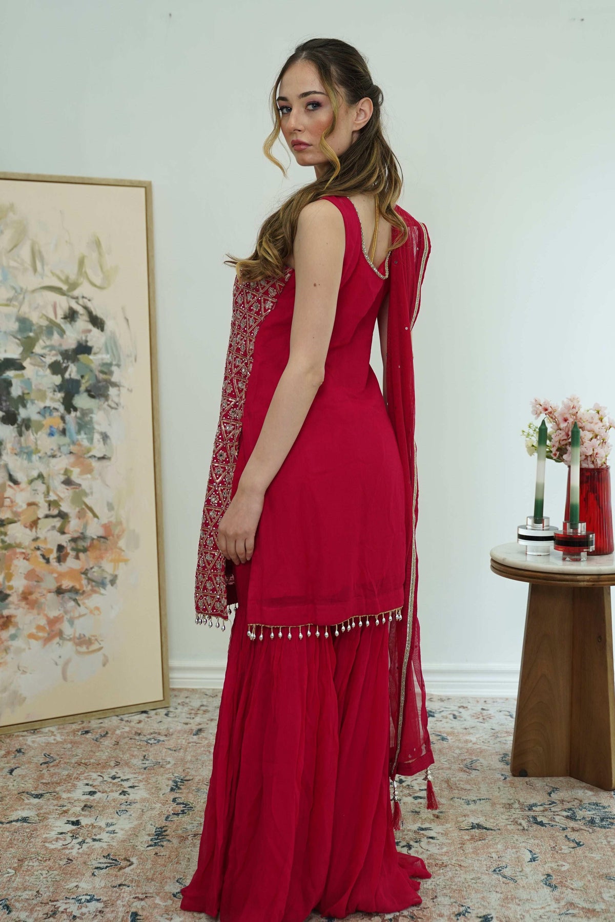 Crimson Mirrorwork Sharara Set (Outside Ontario)
