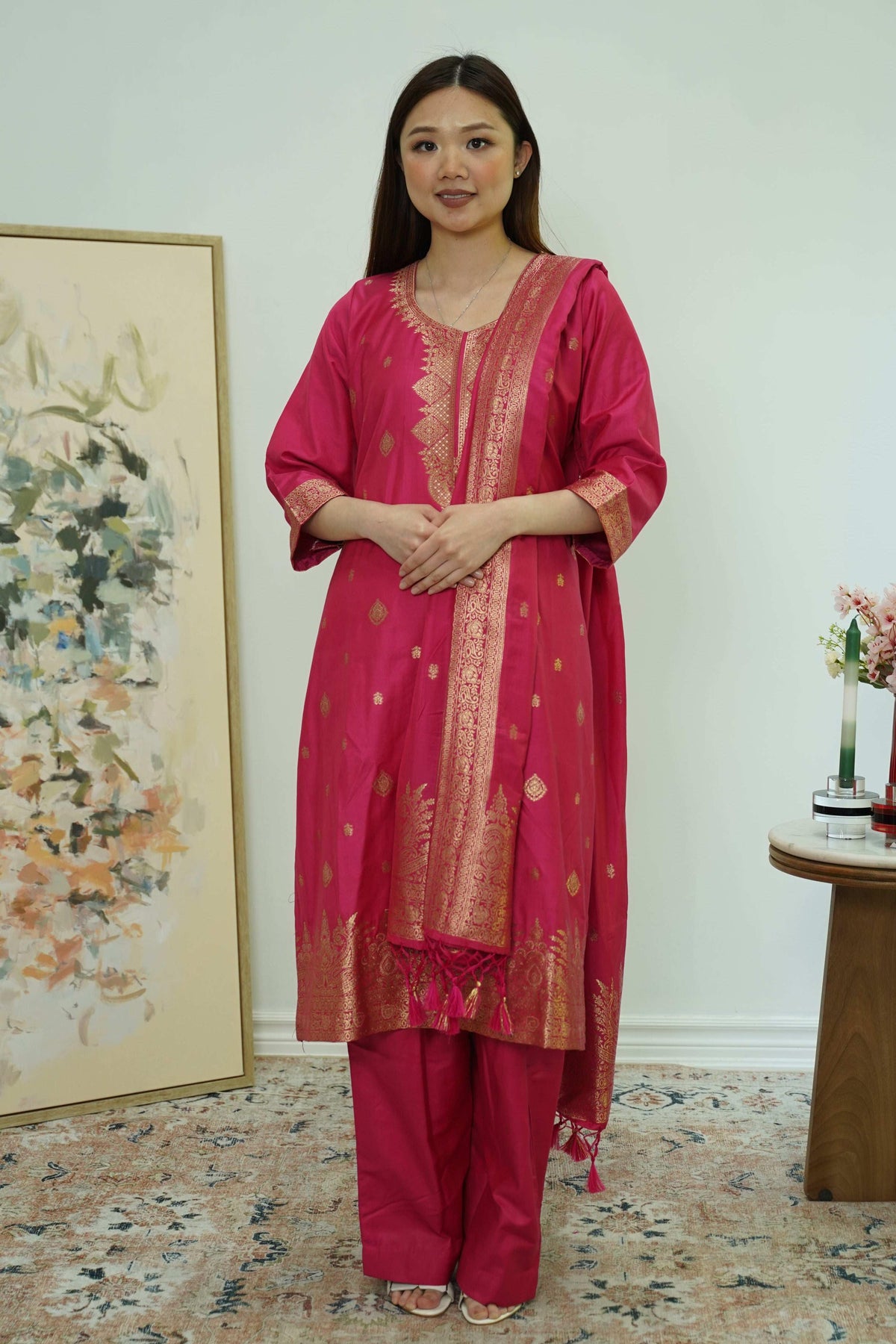 Fuchsia Radiance Brocade Salwar Kameez (Outside Ontario)