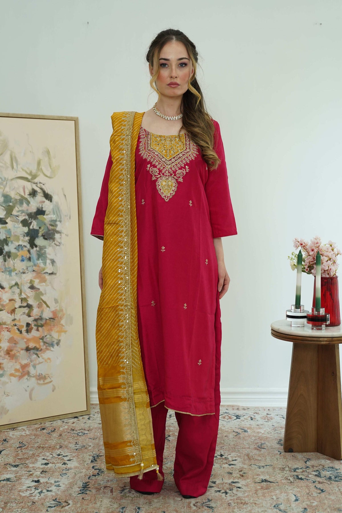 Maroon & Mustard Threadwork Salwar Kameez (Outside Ontario)